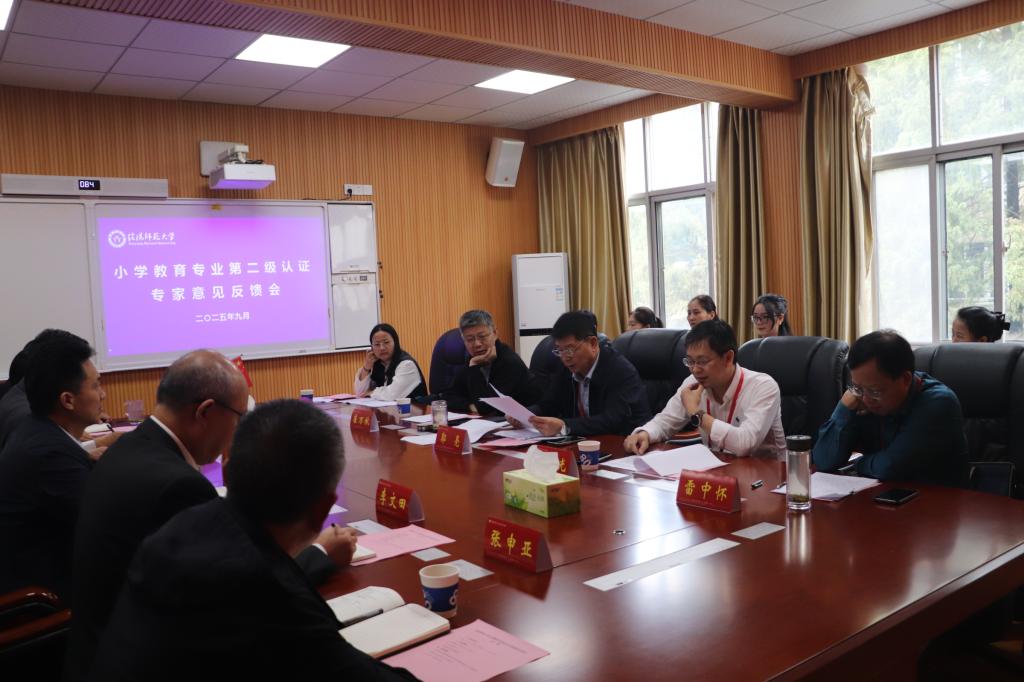 9月20日,小学教育专业认证专家意见反馈会在教七楼301会议室召开。以安徽科技学院原副校长郭亮教授为组长的认证专家组、学校副校长朱晓东、beat365中文官方网站班子成员、专业负责人、认证联络员以及教师代表出席会议。