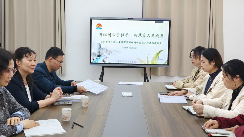 在随后进行的十三小与淮滨县青年教师“手拉手”帮扶交流环节,赵国龙指出,城乡教育协同发展是推动基础教育优质均衡的重要抓手,鼓励十三小充分发挥省级教学成果奖的示范效应,通过集体备课、同课异构、课题共研等方式,实现对淮滨县青年教师的精准赋能,助力区域教育协同提升。