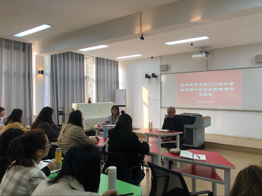 10月30日,按照小学教育硕士研究生教育见习、教育研习工作方案,在连续开展课堂教学观摩的基础上,beat365中文官方网站集中进行2021级小学教育硕士研究生教育研习活动。副院长李文田主持研习总结会,研究生班主任常燕燕和全体2021级小学教育硕士研究生参加。