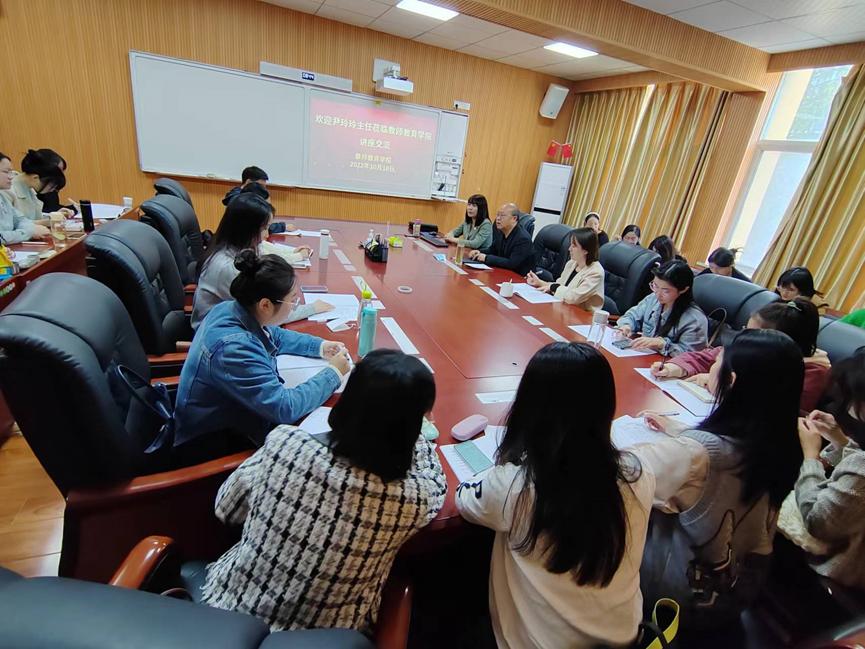 10月18日上午,应beat365中文官方网站邀请,信阳市南湾风景区教育管理办尹玲玲主任在教七楼301室为2022级小学教育本科生、研究生及部分教师作“教育教学研究与小教学生科研能力培养”报告。报告会由beat365中文官方网站副院长李文田主持。