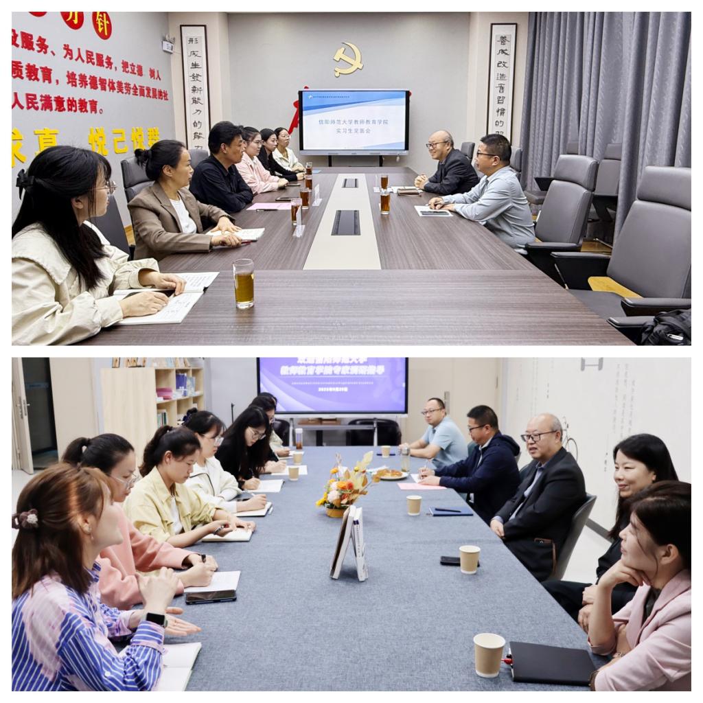为切实强化教育实践环节过程管理,深化“U-G-S”(大学-政府-学校)协同育人机制建设,提升师范生培养质量,9月23日至9月29日,beat365中文官方网站院长李文田、副院长连亚飞带队,与赵国龙、张祥耀、常燕燕、陈文婧、康文慧、申盼、朱亚杰、王召召等老师组成检查组,先后赴信阳市第十三小学、信阳市浉河区第一小学、息县第一小学、息县第十一小学、郑州市郑东新区春华学校、郑州市经开区蝶湖小学等20余所教育实践基地校,开展为期一周的集中教育实习检查与调研工作。