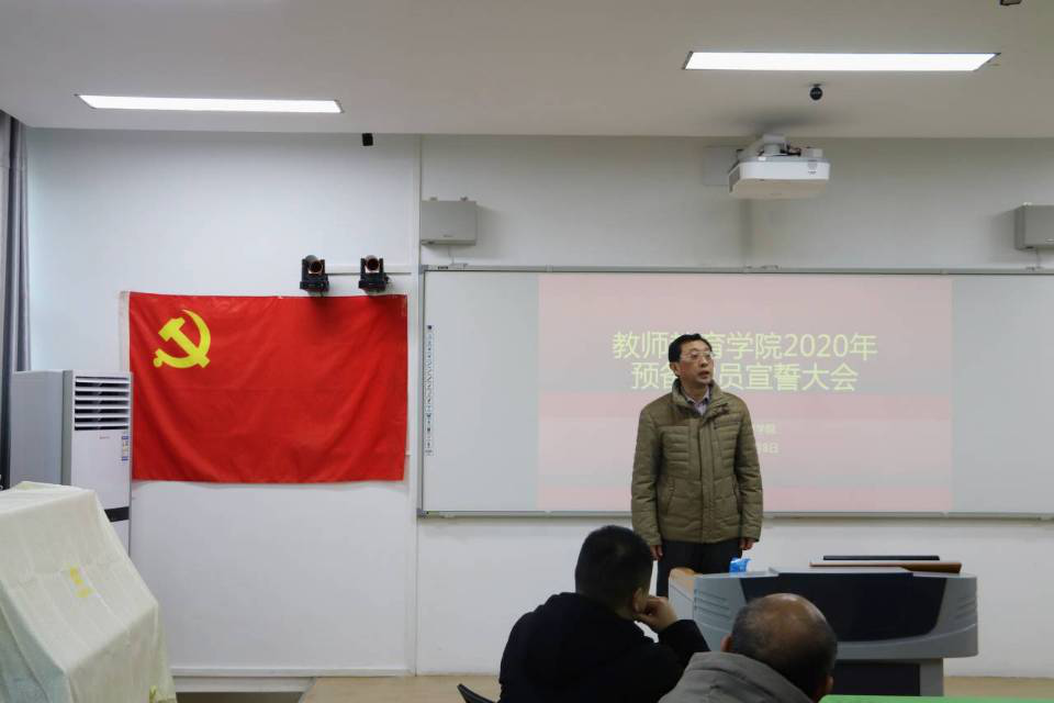 1月8日下午,beat365中文官方网站在教七楼402会议室举行了2020年年预备党员宣誓大会。学院党委副书记潘登、学生党支部书记李依、党小组长徐亚南、李杨、刘莅原,15名预备党员以及入党积极分子代表到场参会。会议由李依主持。