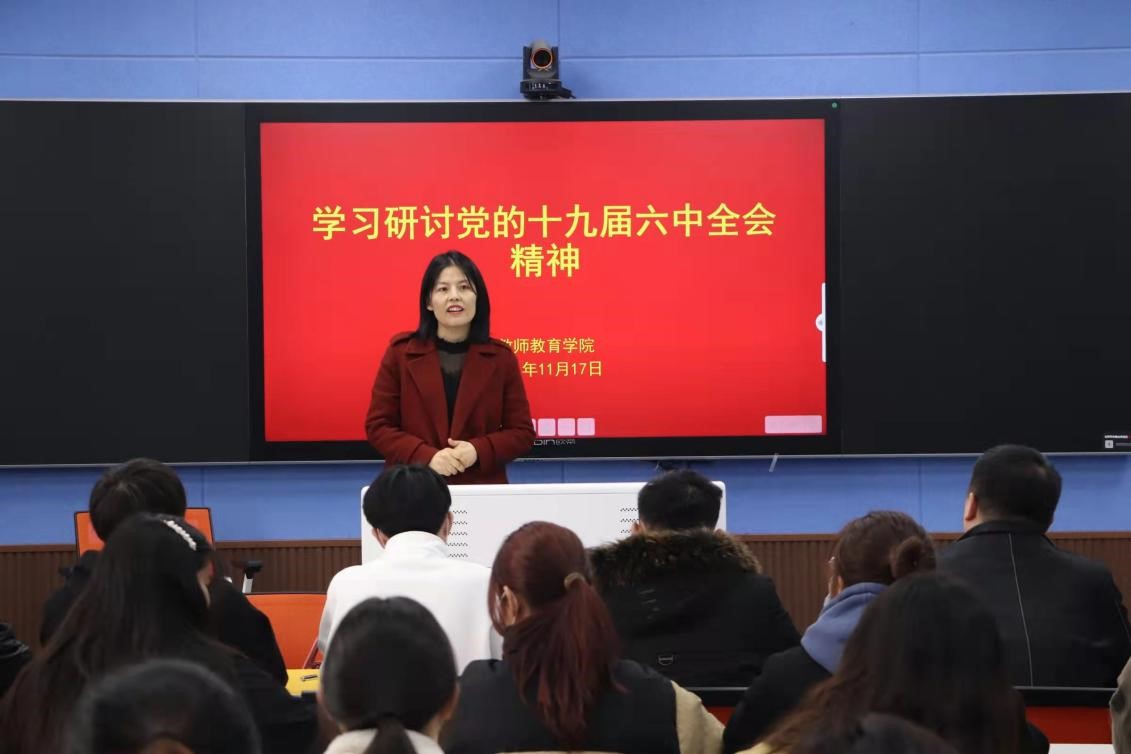 11月17日,党委副书记王艳蕊组织学习研讨党的十九届六中全会和河南省第十一次党代会精神。王艳蕊从历史性的战略意义、可行性的现实举措两大方面为在场师生党员阐述会议内容,解析会议要领,传达会议精神。