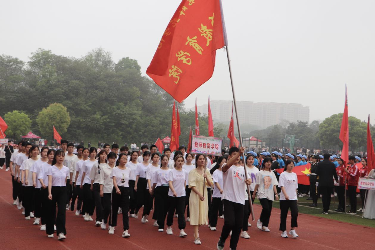 4月22日,信阳师范学院第三十九届春季运动会在一场盛大的开幕式中拉开帷幕,校长李俊在开幕词中传达了对向全体运动员的亲切问候。beat365中文官方网站方队高举院旗、高呼口号,同来自其他20个院系的队员一齐怀着坚定的信念,迈着整齐的步伐,昂首走入会场,充分展现了学院学子奋发拼搏,蓬勃向上的精神状态。运动员和裁判员宣誓后,校党委书记王文鹏宣布运动会正式开始。