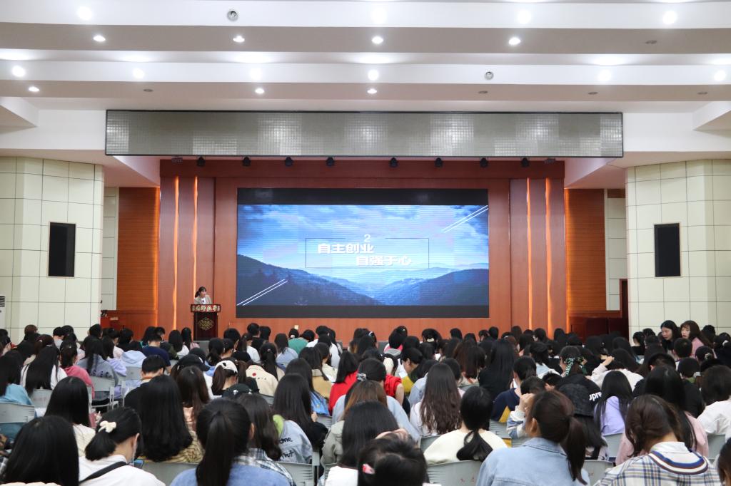 主讲人程晓龙以时间为轴线讲述了自己大学的创业历程。他讲到,大一面对琐事的热情,大二面对难事的韧劲,大三面对大事的从容,这三年的蜕变让他从懵懂的基层干事成长为一名稳重的中高层管理者。演讲中,程晓龙提出了“上大学第一次感觉什么事情最难”这个问题,引起了在场学生的强烈共鸣。程晓龙和现场的发言代表在大学兼职和大学学业两大类难事上进行了沟通交流。这次互动将现场的氛围推向高潮,极大的调动了在场学生聆听讲座的热情。接着,主讲人涂彩莉以“天道酬勤,励志万岁”为主题讲述了自己大学的创业故事。她谈到,自身出自农村,在创新创业这条路上起步十分困难。大学三年,她在创业这条路上栉风沐雨,奋勇向前,最终她创办的教育培训机构在信阳市光山县当地家喻户晓,涂涂车业也在信阳市的学校大放光彩。涂彩莉认为,新时代是奋斗者的时代,更为青少年提供了干创事业,成长成才的广阔舞台。她鼓励在场学生,奋进新时代、激荡新气象、成就新作为。涂彩莉以真挚的言语,切实的经历打动了在场学生,使创新创业的种子在在场学生的心里生根发芽。