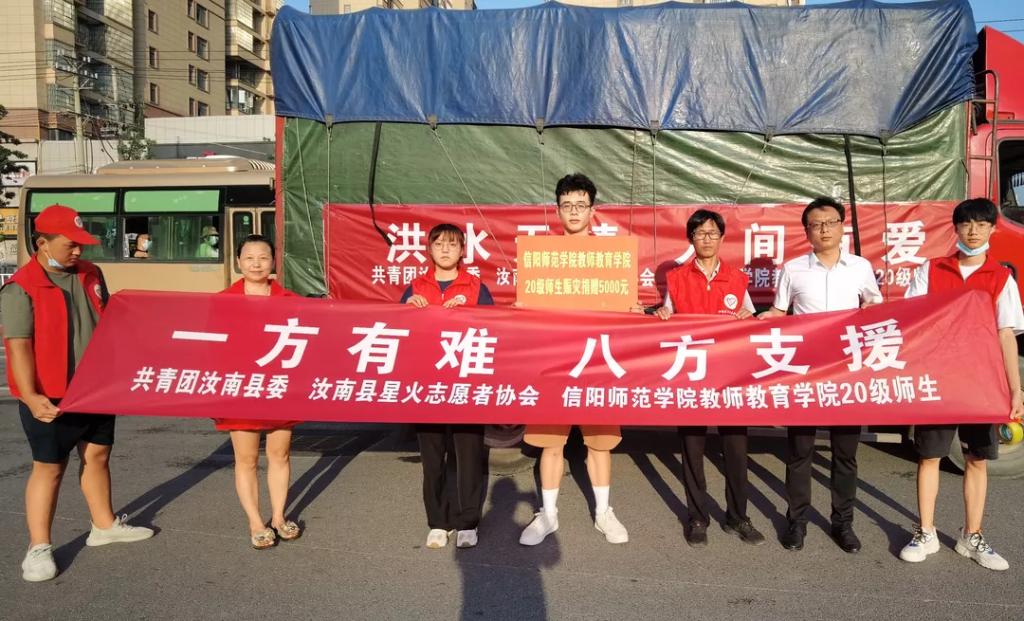 7月28日下午,爱心募捐结束后,20级本科六班团支书吴华政与其家乡所在地汝南县团委积极沟通,县团委对此表示强烈支持,随即与其下辖的星火志愿服务队对接并捐出5000元与小教学子一同驰援河南新乡。7月29日,接到河南新乡红十字会反馈,由于集中安置点灾民缺乏米面油等物资,生活质量和医疗物资都无法保障,决定购买170袋面粉,120桶油和7箱医疗物品。7月30日,学院学生代表吴华政,康思源跟随星火志愿服务队的物资车队一同前往河南新乡搬运救援物资,慰问救灾人民。返回时,新乡人民对其表示由衷的感谢。