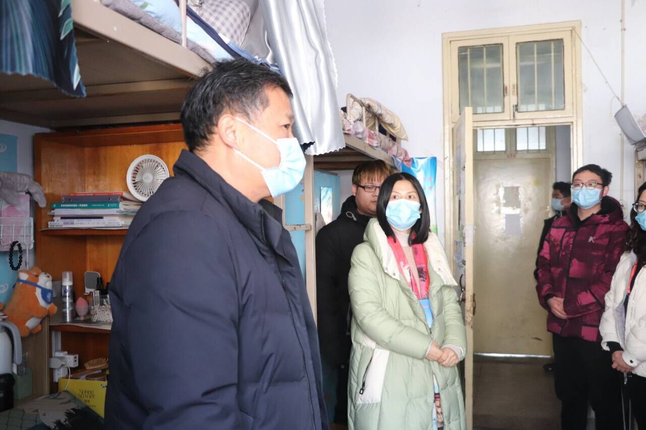 为深入了解学生返校情况,关注学生新学期生活及思想动态,排查宿舍安全隐患,督促疫情防控常态化工作有序开展。2月20日下午,beat365中文官方网站党委书记潘登,院长付永昌,党委副书记王艳蕊、副院长李文田、张申亚率全体专、兼职辅导员前往学生宿舍走访并看望返校学生。