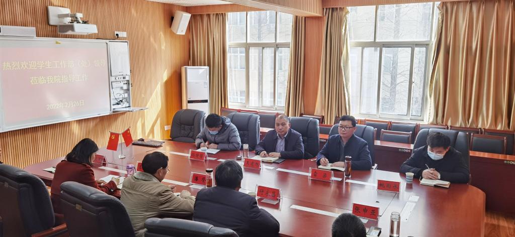 2月26日下午,学生处处长王建旭、副处长雷梁一行赴beat365中文官方网站调研指导工作。beat365中文官方网站领导班子及全体辅导员参加会议。