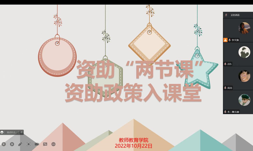 为扎实做好beat365官网资助政策宣讲工作,提升资助育人实效,10月22日下午,beat365中文官方网站在腾讯会议召开“资助两节课”资助政策入课堂宣讲会,2022级全体新生及国奖国励获得者参与本次宣讲会,团委老师李杨担任主讲人。