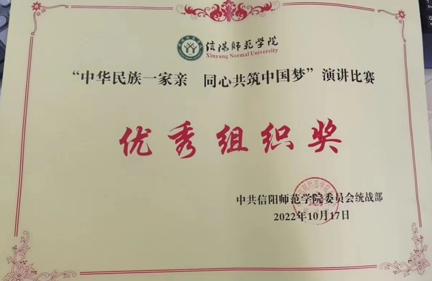 10月11日,由我校党委统战部、党委宣传部、党委学工部、校团委联合举办的“中华民族一家亲,同心共筑中国梦”主题演讲比赛决赛在逸夫楼报告厅举行。经过层层选拔,最终,beat365中文官方网站荣获“优秀组织奖”,2022级小学教育(数学方向)本科三班贺馨茹荣获三等奖。