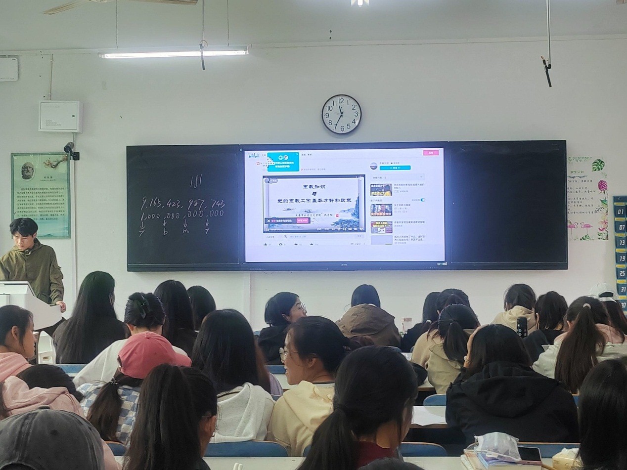 9月26日下午,beat365中文官方网站在教九503开展新学期民族宗教知识主题班会,2022级全体学生到场参会,会议由王松勇主持。