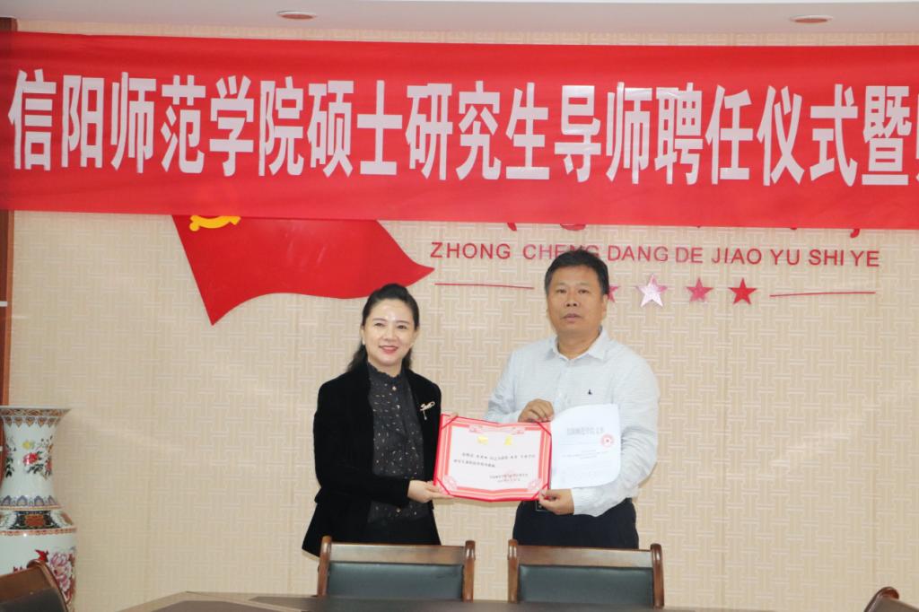 会上,付永昌介绍了参加见面会的相关领导、校内外导师代表及信阳师范学院beat365中文官方网站办学基本状况和2019级小学教育专业硕士研究生招生情况;宣读了《信阳师范学院硕士研究生导师遴选和管理办法》及《信阳师范学院关于增列硕士研究生指导教师的通知》文件,增列信阳市第九小学校长周雁翎同志为信阳师范学院小学教育专业学位硕士研究生导师,并为周雁翎颁发导师聘书。新晋导师周雁翎表态发言,表示一定会按照信阳师范学院研究生导师相关规定要求,认真履行导师职责,完成硕士研究生培养任务。李文田就研究生导师岗位职责及小学教育专业硕士研究生培养方案进行了解释说明。2019级研究生进行了自我介绍,并和导师进行了沟通交流。