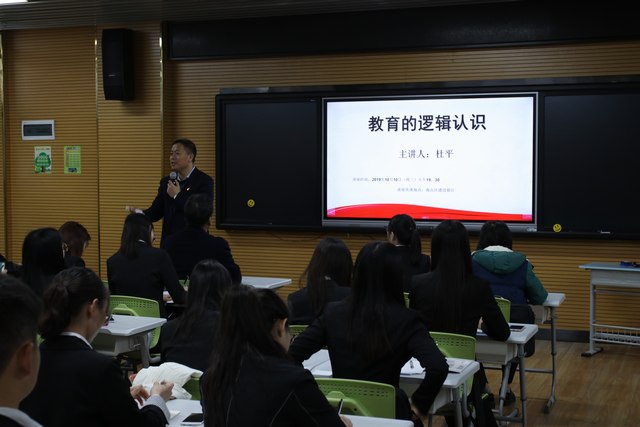 课后,杜平校长引领大学先后参观了学校的电子阅览室、操场、3D实验室等,最后在多媒体教室为师生作了“教育的逻辑认识”专题报告,分别从国家、社会、学校、个人等不同层面,阐释了自己对教育的逻辑认识和理解,将亲身经历化作肺腑之言,使同学们既理解了为师之理,也理解了为师之道,深化了同学们的职业认知。