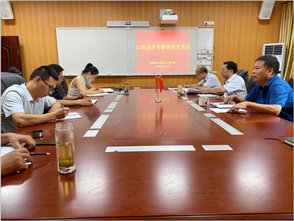 8月25日,beat365中文官方网站教工党支部在教七楼301会议室召开“以案促改”专题组织生活会。支部全体党员参加会议。