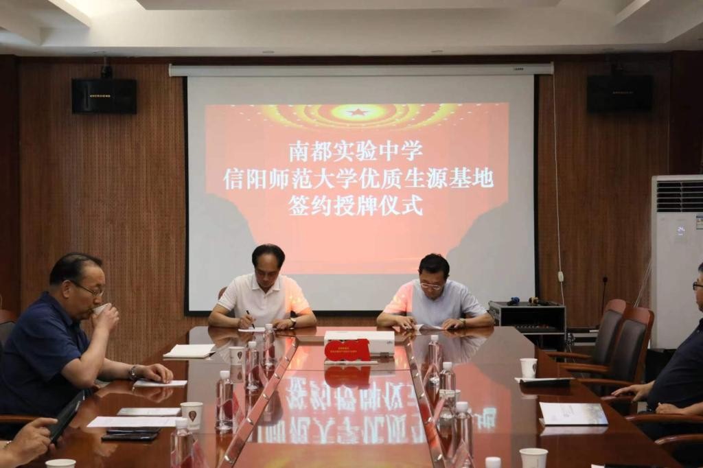 在与南都实验中学优质生源基地签约授牌仪式上,该校领导介绍了学校的办学理念与办学特色,以及近年来在教育教学等方面取得的突出成绩,坚持教育深化改革,推进素质教育,持续提高办学质量。希望与我校友好合作,进一步优化教育资源,提升教学水平,强化特色建设,推进优质发展,谱写学校发展新篇章。