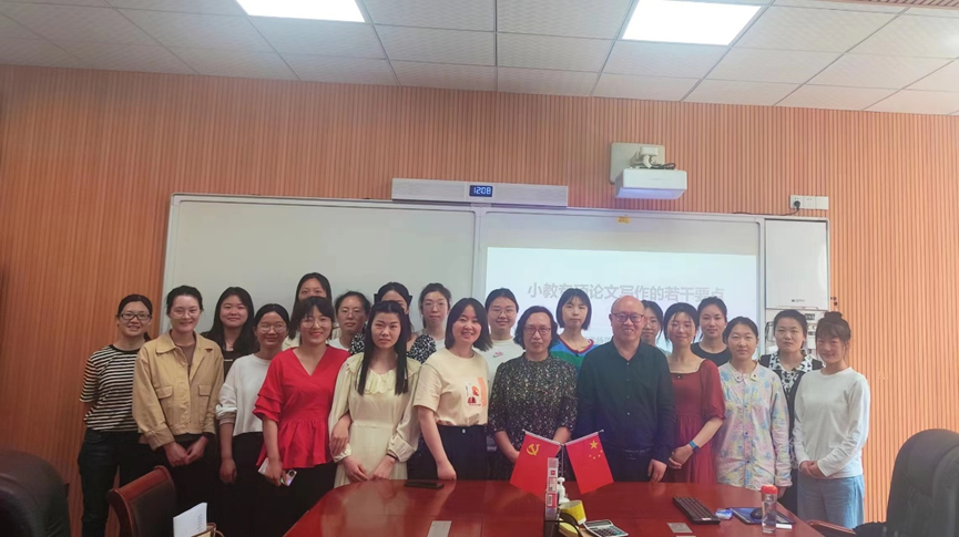 4月20日上午,应beat365中文官方网站邀请,河南师范大学李玉芳教授在教七楼301会议室为beat365官网小学教育师生作题为“小学教育专业论文选题与写作的若干要点”学术讲座。讲座由学院副院长李文田主持,教学秘书赵国龙、研究生秘书常燕燕、小学教育专业部分本科生与2022级全体研究生参加活动。