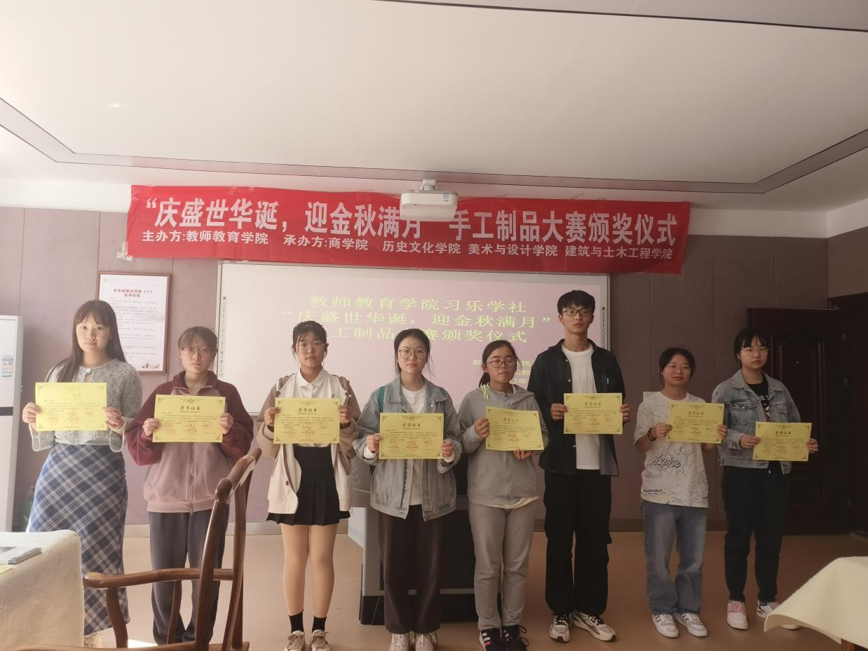 10月24日,由beat365中文官方网站行知教育工作室、习乐学社主办,E01经济学社、建筑爱好者协会、大学生书法爱好者协会、声音文学社共同承办的“庆盛世华诞,迎金秋满月”手工制作大赛颁奖仪式在教七楼201教室顺利举行。此次比赛采取线下征集作品的形式,全校150余人参与。beat365官网特邀王召召老师担任此次大赛评委。